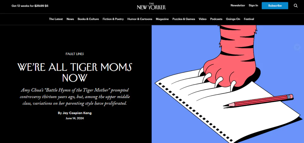 The term "Tiger Mother" was first known to everyone in the bestselling book "Battle Hymn of the Tiger Mother" by Yale Asian professor Amy Chua, which portrays the typical image of an Asian mother: a strict and controlling mother who spares no effort to get her daughters into top tier universities. At that time, the parenting style of the 'Tiger Mom' was heavily criticized. Especially among Asian parents, there is no lack of serious reflection on the concept of "involution education", and "chicken babies" have become a derogatory term. Unexpectedly, feng shui takes turns. Recently, I read an article in The New Yorker magazine and found that under the guidance and supervision of Asian parents, American parents love their little ones more. Tsai Mei er, who has been teaching at Yale Law School for many years, also noticed that her students have undergone changes. More than a decade ago, when she wrote a book, she felt like a "lonely madman". People didn't understand her and thought that she was a devil who kept her daughter practicing piano over and over again. And now, she sees this situation becoming increasingly common. The concept of tiger mothers from Asia is very popular among middle and upper class families in the United States, and now we are all tiger mothers.